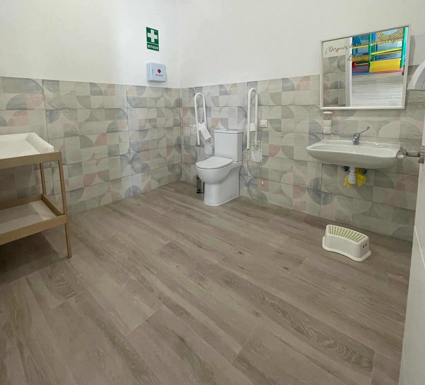 Baño adaptado a minusválidos, con cambiador de bebé.