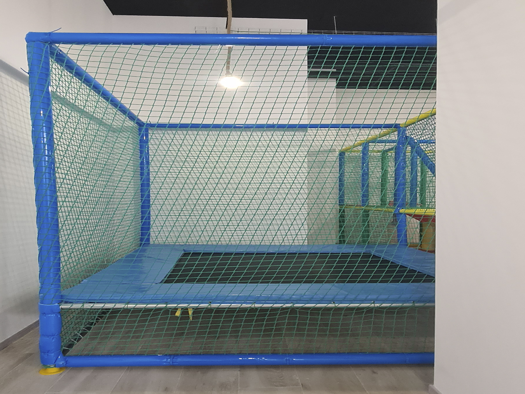 Cama elástica de 6 m2 para 2 niños (90 kg máximo), donde disfrutarán de saltos y juegos en un entorno divertido y seguro.